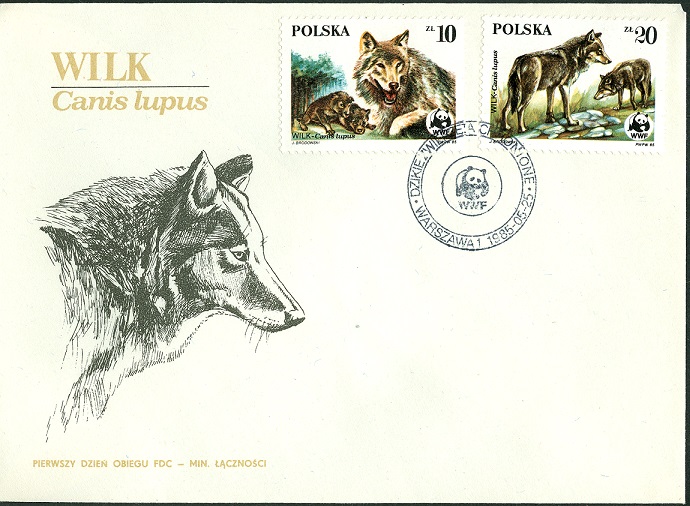 In einer Serie "Heimisches Wild" ist in Polen diese Marke (MiNr 2247) mit der Abbildung eines Wolfes (Canis lupus) erschienen.