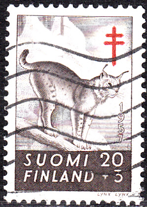 Auch diese Marke aus einer finnischen Serie zur Bekämpfung der Tuberkulose (MiNr 479) stellt uns einen Luchs (Lynx lynx) vor. Leider trägt die Marke einen Wellenstempel, aber nur zur Vorstellung des Motivs kann sie trotzdem noch verwendet werden.