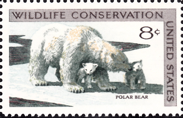 In einer Ausgabe "Naturschutz" ist in den USA auch eine Marke (MiNr 1039) mit einem Eisbären (Ursus maritimus) mit zwei Jungen erschienen.