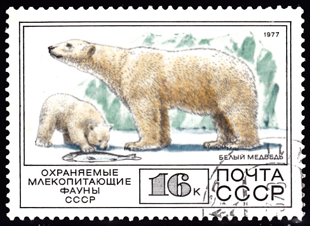 In einer Serie "Giftschlangen und Säugetiere" ist in der Sowjetunion auch eine Marke (MiNr 4683) mit einem Eisbär (Ursus maritimus) mit einem Jungen erschienen.