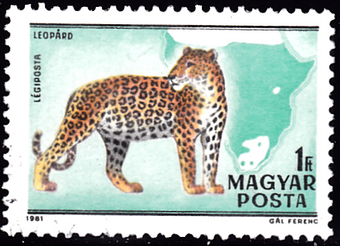Diese Marke aus Ungarn (MiNr 3472 A) zum 100. Geburtstag von Kálmán Kittenberger (1881-1958, Afrikaforscher) zeigt einen Leopard (Panthera pardus).