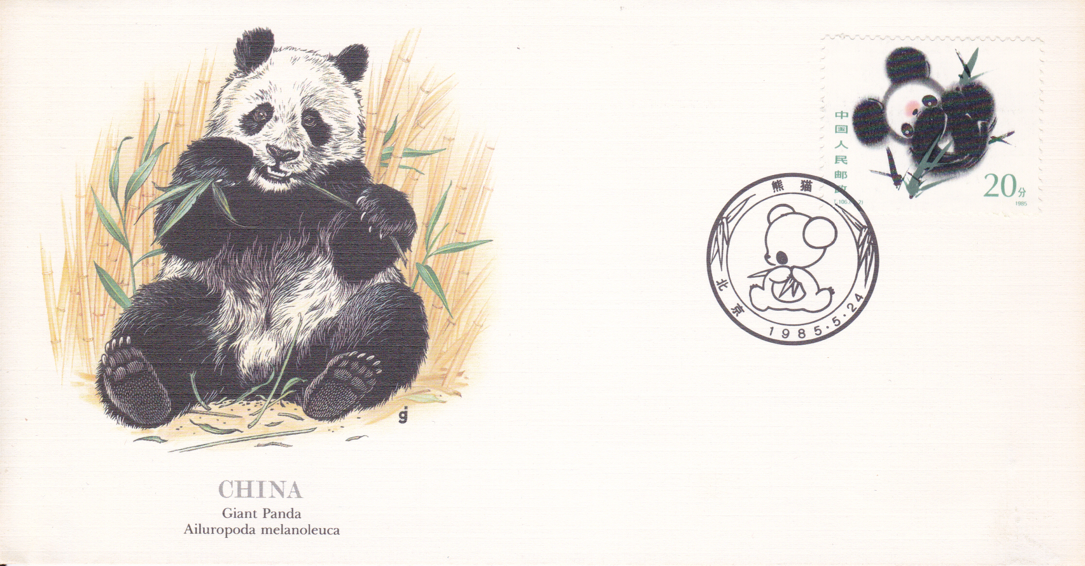 FDC mit der Marke zu 0,85€ (MiNr 2409) mit zwei Riesenpanda (Ailuropoda melanoleuca) aus dem bereits hier gezeigten Block "Panda-Forschung im Tiergarten Schönbrunn" aus Österreich (MiNr Block 18) mit einem Sonderstempel aus Wien mit einem Riesenpanda (Ailuropoda melanoleuca) beim Fressen.