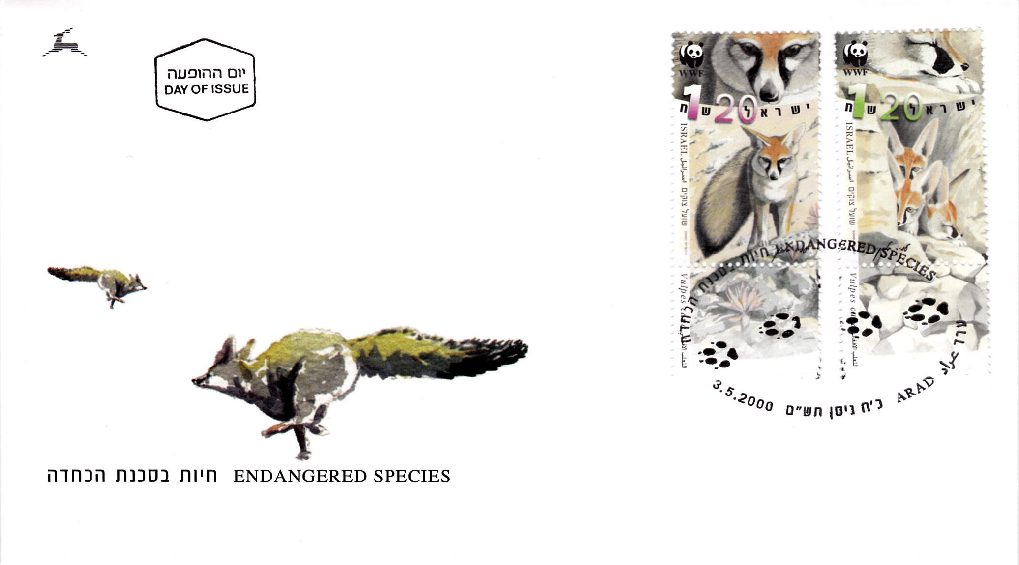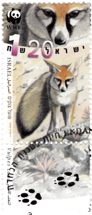 In einer Serie "Weltweiter Naturschutz" aus Israel ist diese Marke (MiNr 1555) mit einem Afghanfuchs (Vulpes cana) auf einem Felden erschienen.