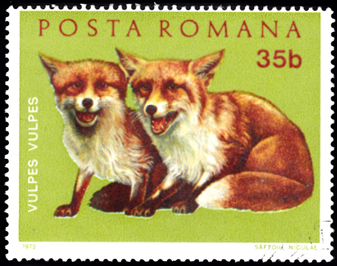 Diese beiden jungen Füchse (vulpes vulpes) kommen aus Rumänien (MiNr 3006).