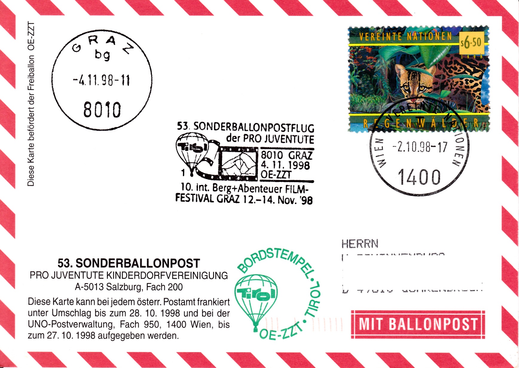 Die Marke wurde auf einem Brief zur 53. Sonderballionpost der Österreichischen Pro Juventute verwendet.