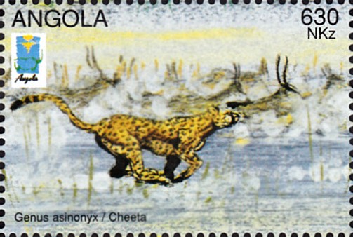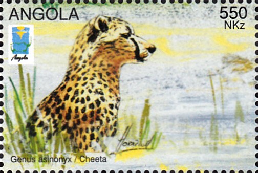 In Angola sind vier Marken erschienen, die das Jagdverhalten eines Gepards zeigt.