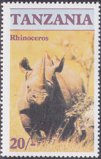 Diese Marke aus Tansania (MiNr 330) mit einem Nashorn ist auch zusammen mit drei weiteren Marken in einem Block (MiNr Block 58) erschienen.