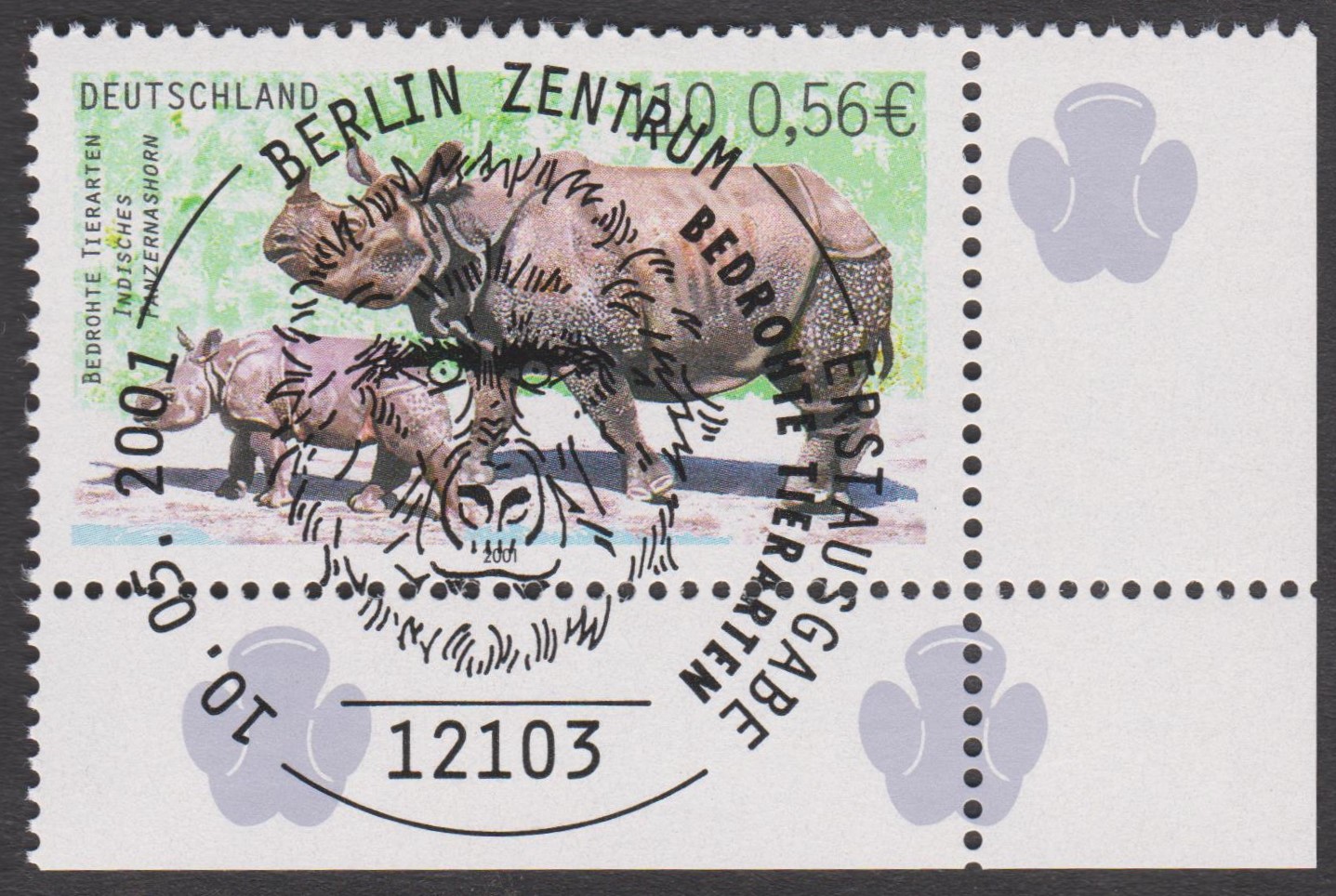 Rechte untere Ecke des Zehnerbogens der Bund MiNr 2182 mit ESST BERLIN: