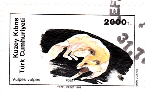 Auch diese Marke aus Türkisch-Zypern (MiNr 255) zeigt einen Rotfuchs (Vulpes vulpes).