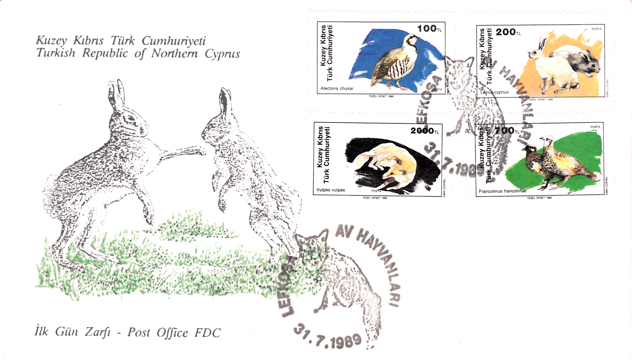 Auf diesem FDC der Post von Türkisch-Zypern wurde die Marke zusammen mit den drei weiteren Marken der Serie mit dem Ersttagsonderstempel entwertet. Im Stempel wird ebenfalls ein Rotfuchs gezeigt.