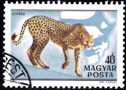 Diese Marke aus Ungarn (MiNr 3470 A) zum 100. Geburtstag von Kálmán Kittenberger (1881-1958, Afrikaforscher) zeigt einen Gepard (Acinonyx jubatus).
