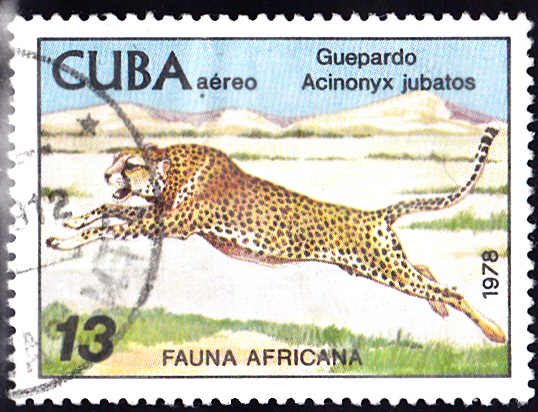 Diese Marke aus Kuba (MiNr 2351) zeigt einen Gepard (Acinonyx jubatus).