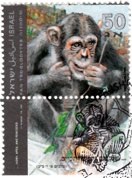 In einer Serie "Tiere im Zoo" ist in Israel diese Marke (Minr 1242) mit einem Schimpansen (Pan troglodytes)) erschienen.