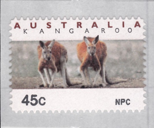 Diese Automatenmarke (MiNr 42) zeigt das Motiv mit den beiden Roten Riesenkängurus (Macropus rufus). Sie hat ebenfalls die Automatenkennung "NPC".