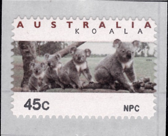 Es folgt jetzt die Automatenmarke (MiNr 43) mit der Koalamutter mit drei kleinen Koalas (Phascolarctos cinereus) und der Automatenkennung "NPC".