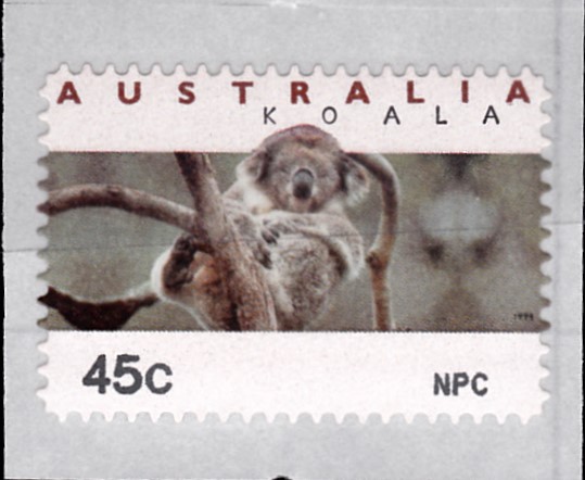 Der schlafenden Koala (Phascolarctos cinereus) wird auf dieser Automatenmarke (MiNr 45) mit Automatenkennung "NPC" gezeigt.