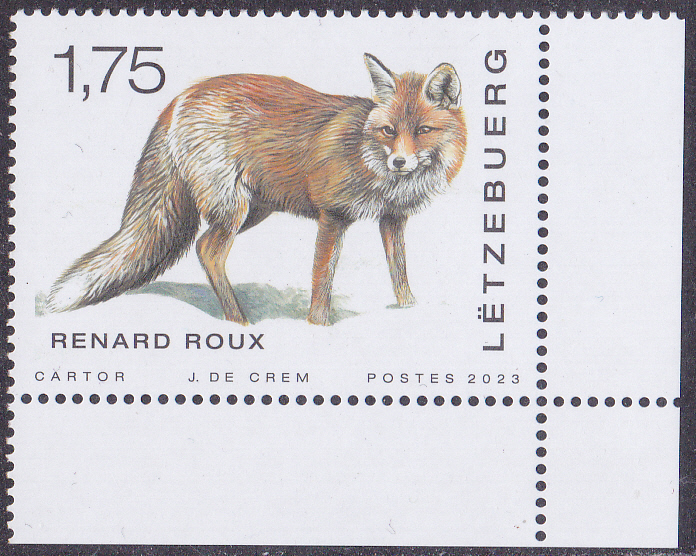 Aus Luxemburg kommt diese Marke (MiNr 2331) mit einem Rotfuchs (Vulpes vulpes).