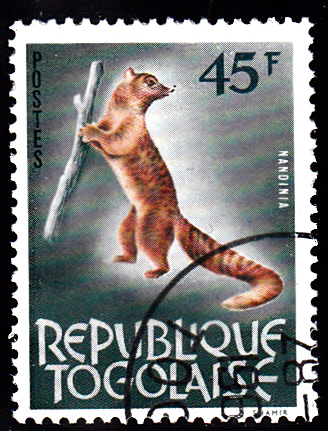 Hier zeige ich eine Marke aus Togo (Minr 399) mit einem Pardelroller (Nandinia binotata).