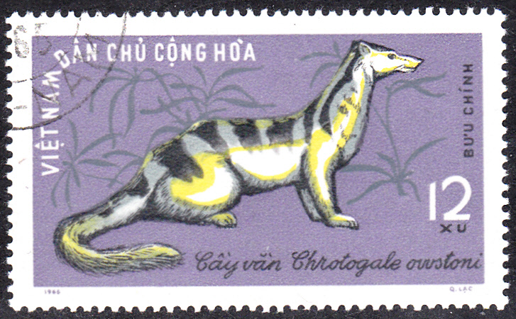 Aus Vietnam kommt auch diese Marke (MiNr 370) mit einem Fleckenroller (Chrotogale owstoni).