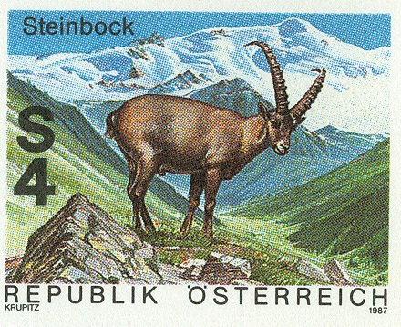 In der Serie "Jagd und Umwelt" erschien in Österreich zum Thema "Wiedereinbürgerung des Steinwildes" eine Marke (MiNr 2306) auch eine Marke mit einem Steinbock (Capra ibex).