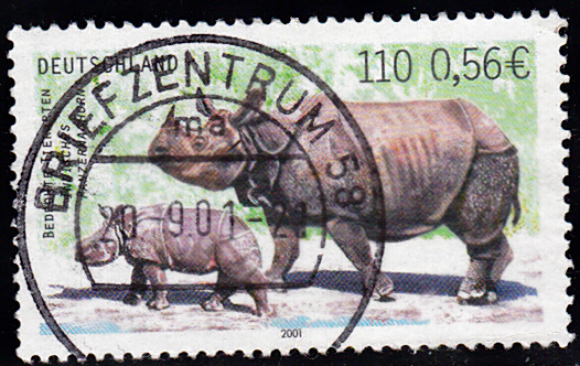 In einer Serie "Zootiere" erschien in der DDR auch ein Wert (MiNr 2033)mit der Abbildung eines Panzernashorns (Rhinoceros unicornis).