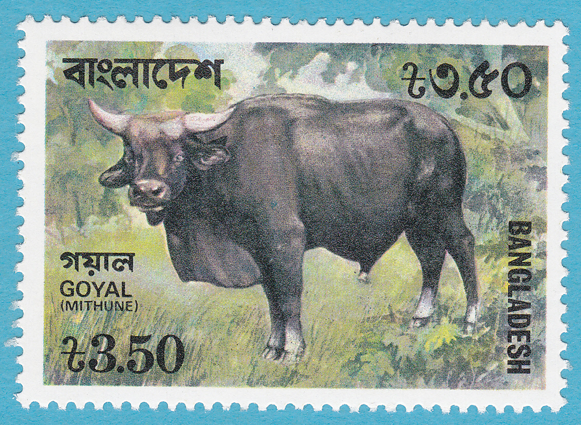 So passt eine zweite Marke aus der oben genannten Serie in eine Sammlung "Königstiger": Der Wert 3,50 Taka zeigt ein Gayal, also eines der Beutetiere des Königstigers.