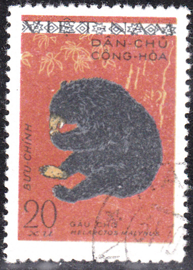 Auf dieser Marke aus Vietnam (MiNr 155) wird ein Malaienbär (Helarctos malayanus) abgebildet.