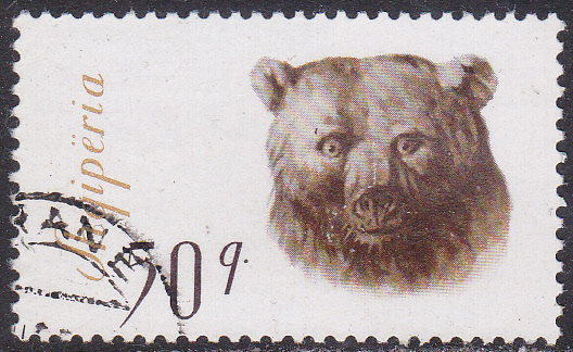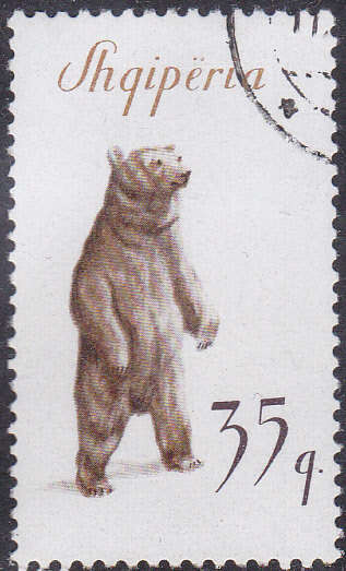 Auf dieser Marke aus Albanien (MiNr 629) wird ein Braunbär (Ursus arctos) abgebildet.