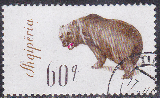 Dieser Braunbär auf der albanischen Marke MiNr 1012 macht sich lautstark bemerkbar.
