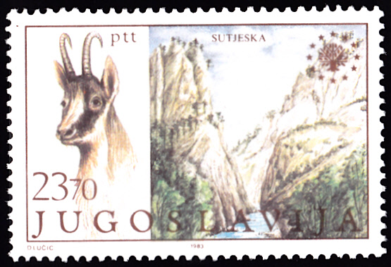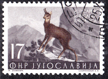 Hier eine Marke aus Bulgarien (MiNr 1061A) mit einer Gämse im Markenbild.