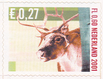 Auf dieser Marke aus den Niederlande (MiNr 1955) wird ein Rentierkopf abgebildet.