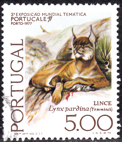 Diese Marke aus Portugal (MiNr 1327) zeigt uns einen Pardelluchs (Lynx pardina).
