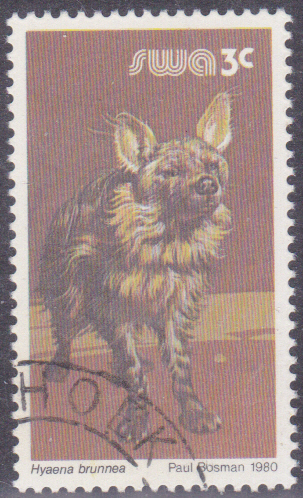 Aus Südwestafrika kommt diese Marke (MiNr 478) mit einer Schabrackenhyäne (Hyaena brunnea)