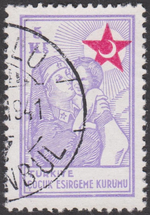 Türkei MiNr. 54 Kinderhilfe 2 1/2 KURUS purpur/karmin erschien am 08.02.1940 in einer Auflage von 500 000 Stück: