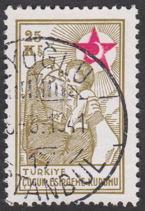 Türkei MiNr. 59 Kinderhilfe 25 KURUS gelbbraun/karmin erschien am 08.02.1940 in einer Auflage von 500 000 Stück: