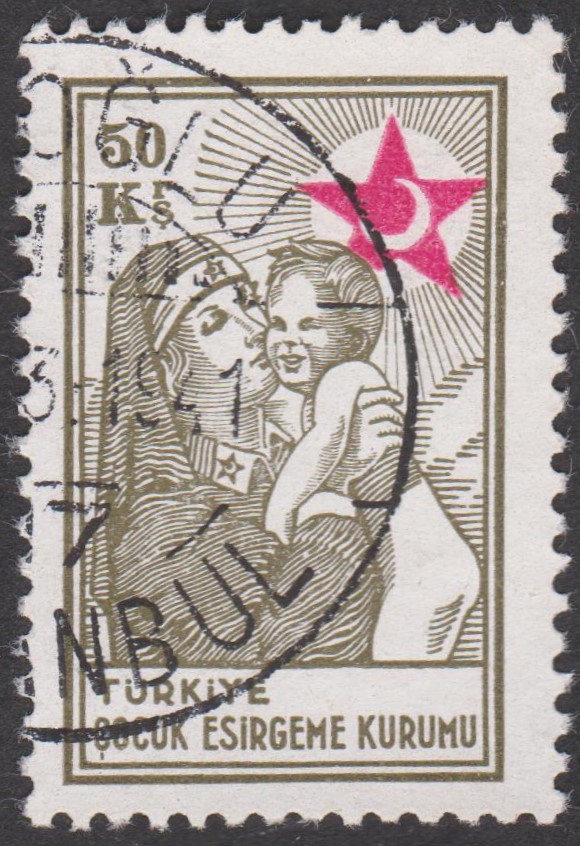 Türkei MiNr. 53 Kinderhilfe 1 KURUS hellblau/karmin erschien am 08.02.1940 in einer Auflage von 2 000 000 Stück: