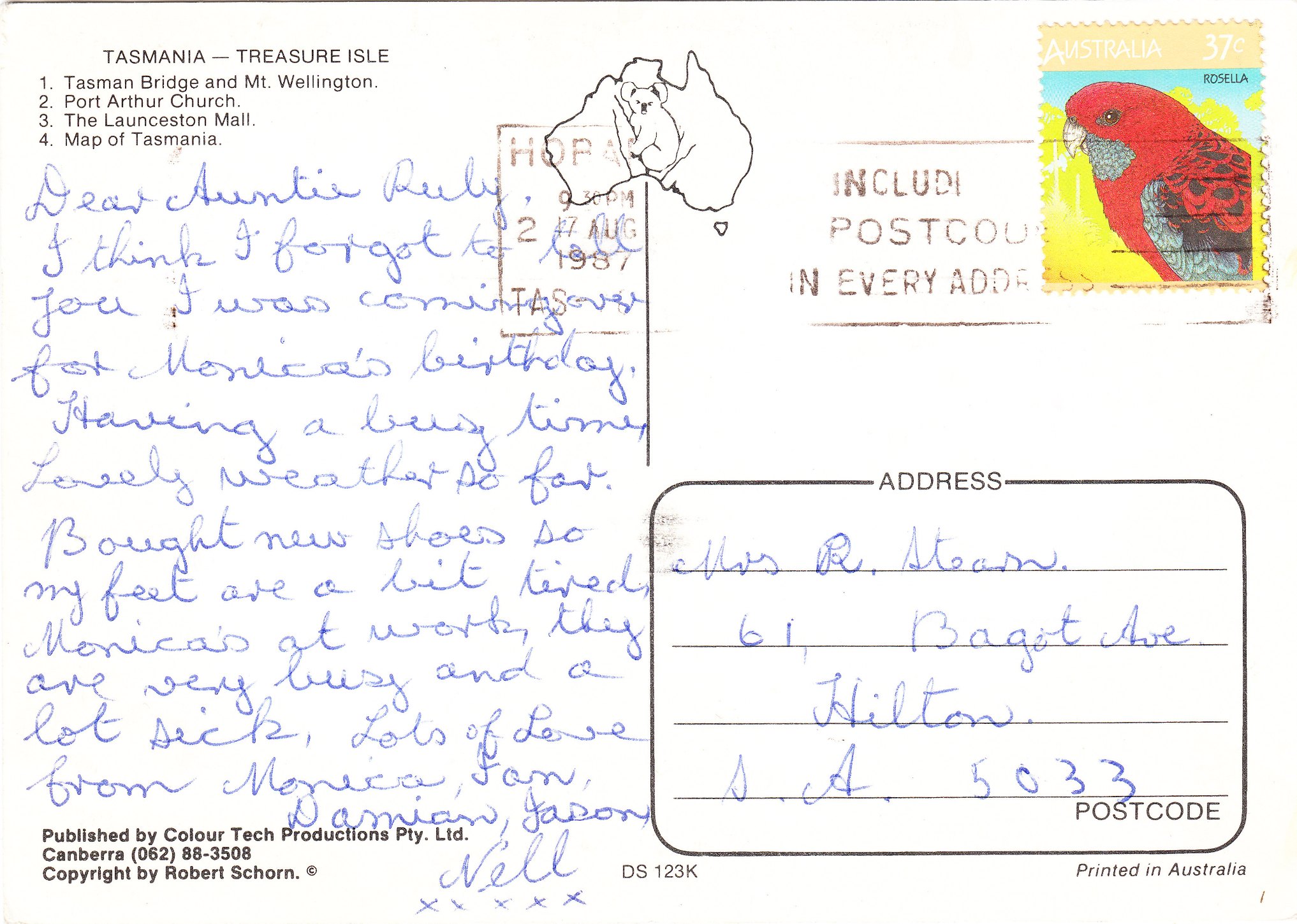 Die englische Bezeichnung für Plattschweifsittiche (Platycercus) "Rosella" wurde auf dieser Briefmarke vermerkt: