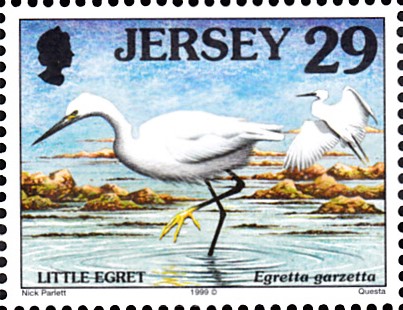 In einer Serie "Naturschutzgebiet Sreburna" erschien in Bulgarien diese Marke (MiNr 1837) mit einem Seidenreiher (Egretta garzetta).