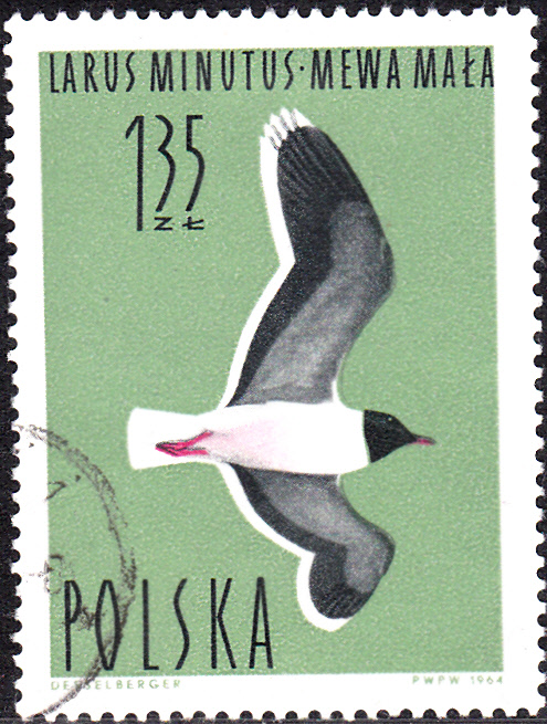 Hier eine Marke aus Polen (MiNr 1495) mit einer Zwergmöwe im Flug.