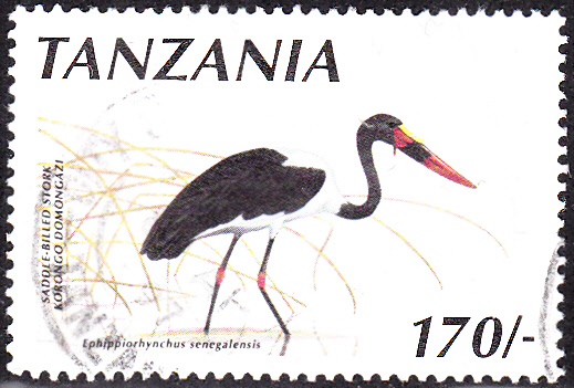 In einer Serie ist in Tansania auch eine Marke mit einem Sattelstorch (Ephippiorhynchus senegalensis) erschienen.