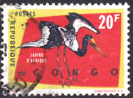 Aus dem Kongo (Kinshasa) kommt diese Marke (MiNr 144) mit einem weiteren Sattelstorch (Ephippiorhynchus senegalensis).