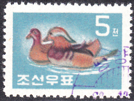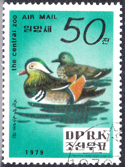 Auf dieser Marke aus der Sowjetunion (MiNr 3787) wird ein Mandarinentenpaar (Aix galericulata) gezeigt.