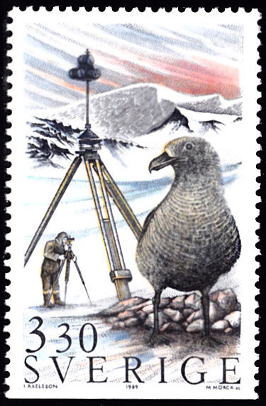 Aus Schweden kommt diese Marke (MiNr 1558) mit einer Antarktikskua (Stercorarius maccormicki).