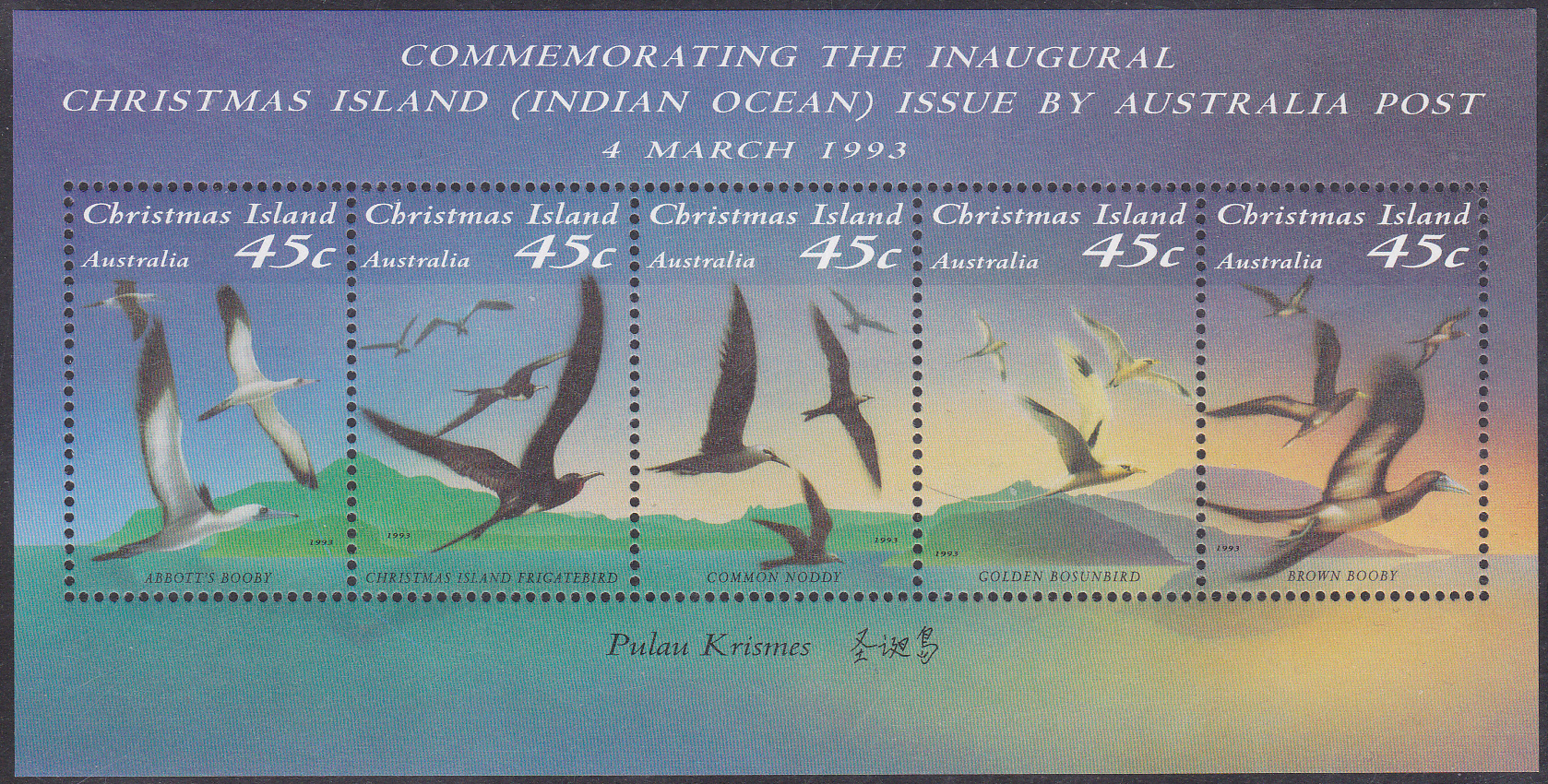 Auch auf einer Marke der Kokos-Inseln (MiNr 332) wird auf der linken Markenseite ein Weißschwanz-Tropikvogel (Phaeton lepturus) abgebildet.