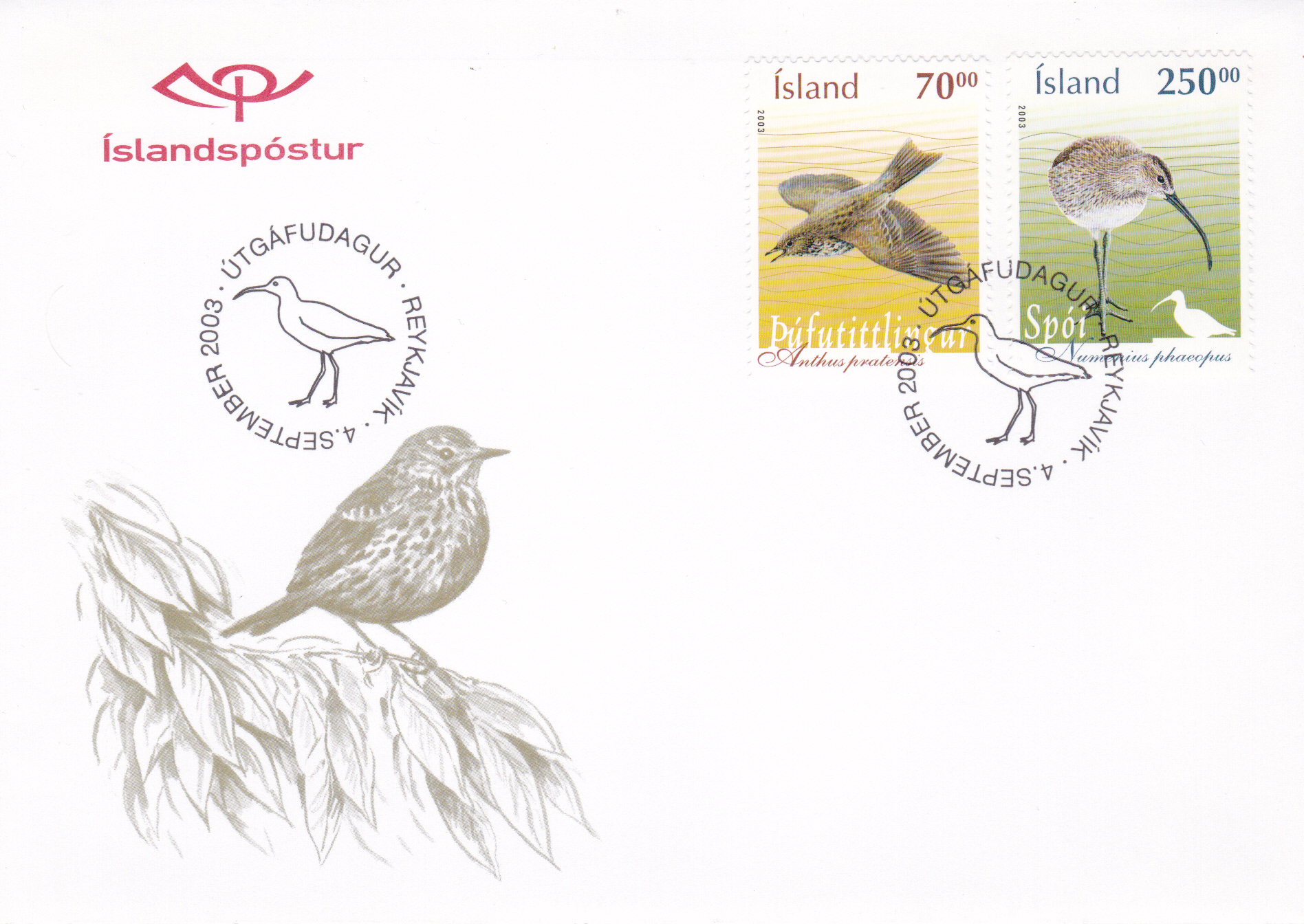 Auf dieser Marke aus Dänemark Färöer (MiNr 30) bildet einen Regenbrachvogel (Numenius phaeopus) ab.