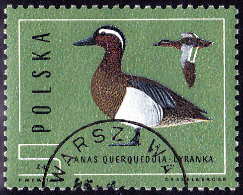 In Polen ist in einer Serie "Wildenten" auch eine Marke (MiNr 2999) mit einer Knäkente (Spatula querquedula) erschienen.