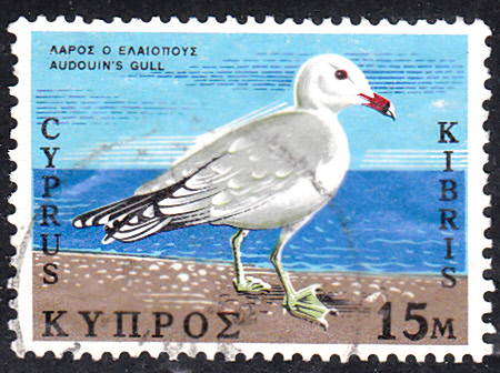 Diese Marke aus Zypern (MiNr 323) bildet ebenfalls eine Korallenmöwe (Larus audouinii) ab.