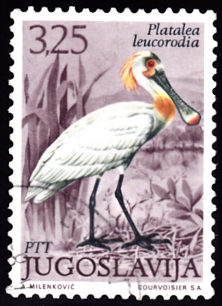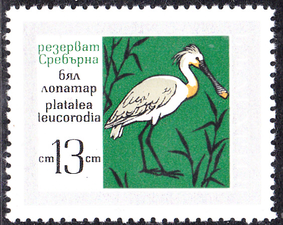 In der Serie "Naturschutzgebiet Sreburna" ist in Bulgarien diese Marke (MiNr 1840) mit einem Löffler (Platalea leucorodia) erschienen.