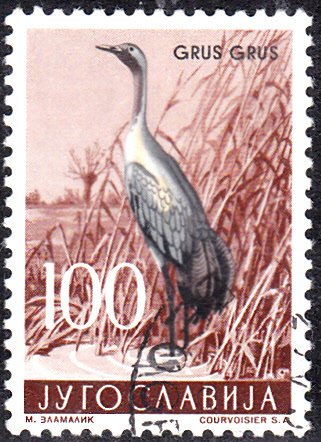 In Jugoslawien ist diese Marke (MiNr 850) mit einem Grauen Kranich (Grus grus) erschienen.