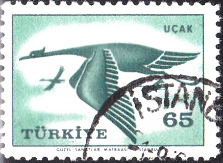 Auf dieser türkischen Luftpostparke (MiNr 1661) werden fliegende Kraniche gezeigt.